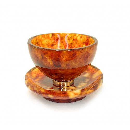 Изящный набор: пиала и блюдце из натурального янтаря и белой ювелирной бронзы.