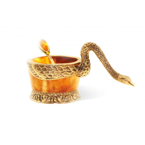 Состав: янтарь натуральный, белая ювелирная бронза.Размер: высота - 5 см., ширина - 10 см., диаметр - 5 см. Длина ложечки - 7 см. Оттенок янтаря может отличаться от оттенка на фотографии.