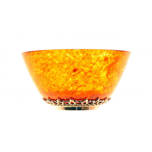 Натуральный янтарь, серебро 875 пробы . Высота - 6,5 см., Диаметр емкости - 10,5 см., Объем емкости - 180 мл.Оттенок янтаря может отличаться от оттенка на фотографии. Поставляется в подарочном футляре.