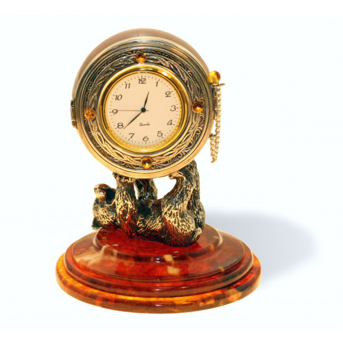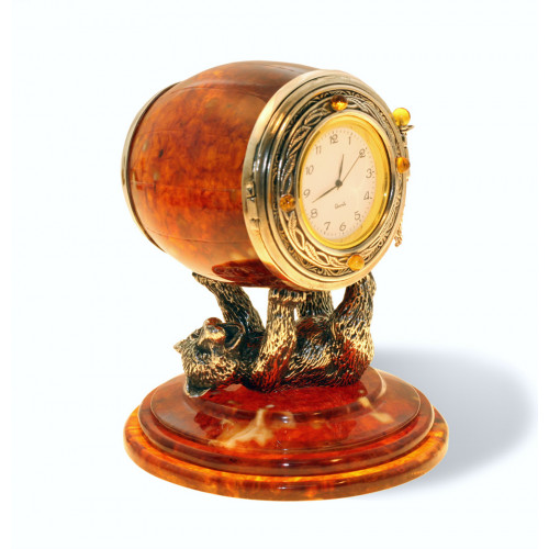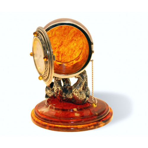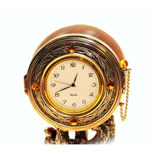 Состав: натуральный янтарь, белая ювелирная бронза (под заказ), часы кварцевые. Оттенок янтаря может отличаться от оттенка на фотографии. Размеры: диаметр - 10 см, высота - 12,5 см.