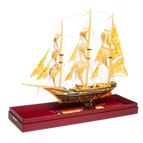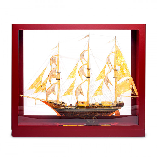 Размеры: 45х41х13 см. Выполнен из натурального янтаря (основа корпуса - дуб). Поставляется в футляре.