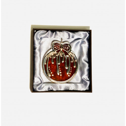 Оригинальное и необычное елочное украшение из натурального янтаря и серебра 875 пробы,украшенное сверкающими кристаллами Сваровски. Оттенок янтаря может варьироваться.