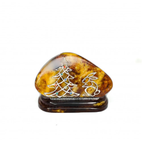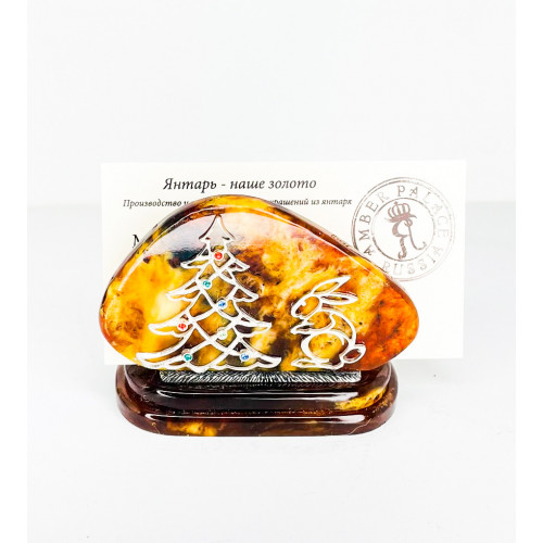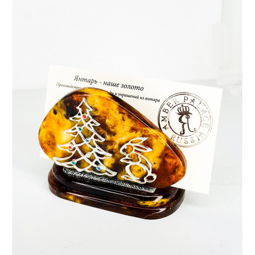 Прекрасный подарок коллеге на Новый Год - визитница из янтаря, украшенная новогодней символикой. Состав: янтарь, серебро 875 пробы , кристаллы Сваровски разных цветов. Размеры 7,5х5,5х4 см. Оттенок янтаря может отличаться от оттенка на фотографии. Поставляется в подарочном футляре.