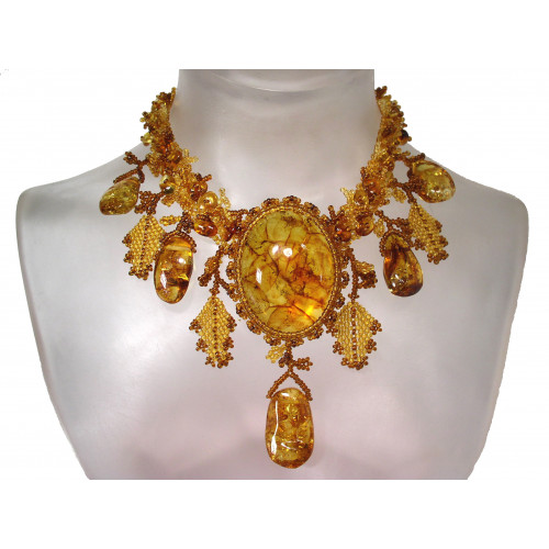 Состав: янтарь, бисер. Длина колье – 45 см. Под заказ длина может быть любой. В случае отсутствия товара на складе срок изготовления и поставки от 3 недель.