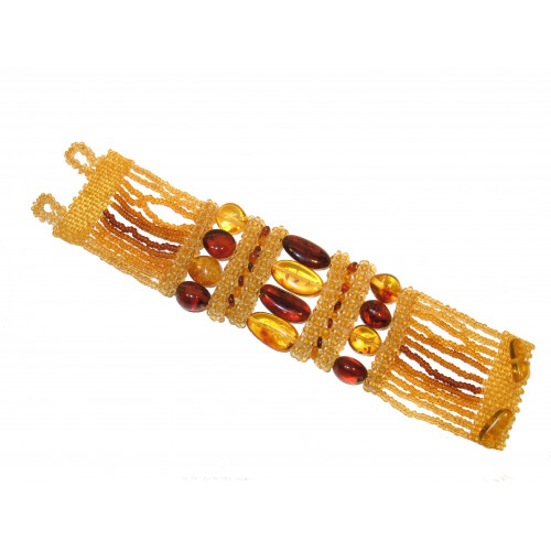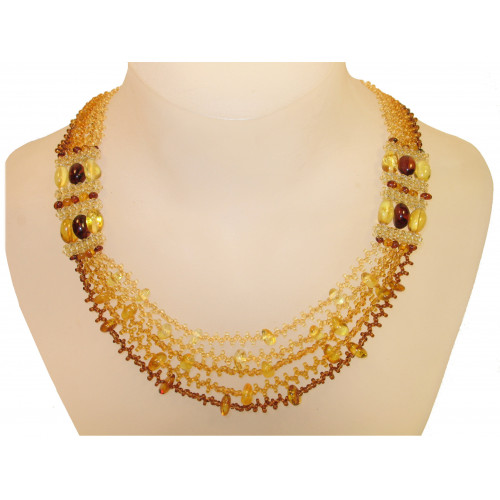 Роскошное колье из балтийского янтаря и бисера 10862-1