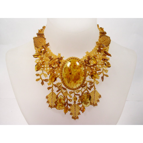 Состав: янтарь, бисер. Длина колье – 45 см. Под заказ длина может быть любой. В случае отсутствия товара на складе срок изготовления и поставки от 3 недель.