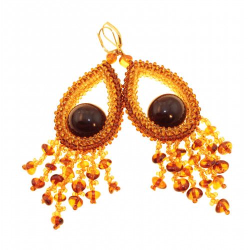 Роскошные серьги из балтийского янтаря бисера ювелирного сплава 40836