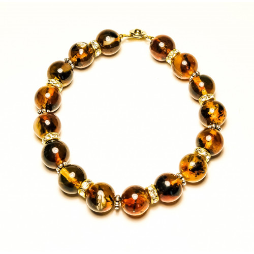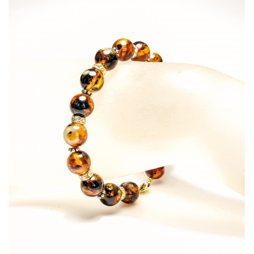 Роскошный браслет из балтийского янтаря с металлическими вставками 20975