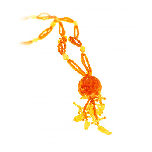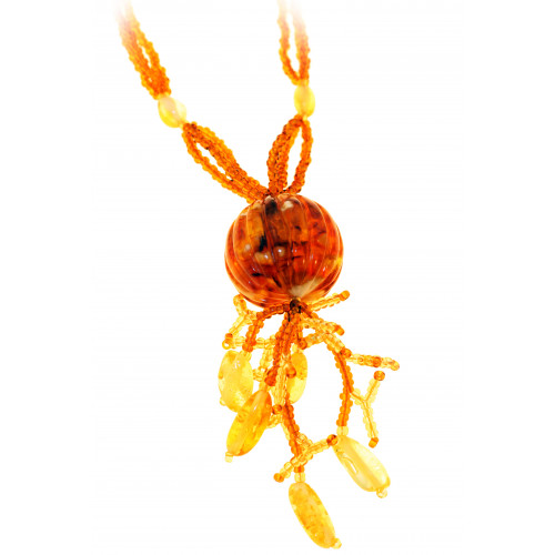 Шарообразный кулон из балтийского янтаря и бисера 30865