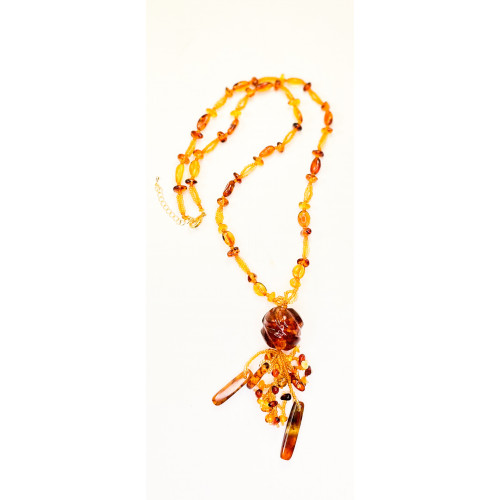 Шарообразный кулон из балтийского янтаря и бисера 30868-1