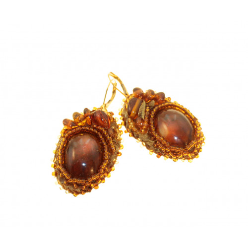 Серьги из балтийского янтаря, бисера и натуральной кожи 10983-1e