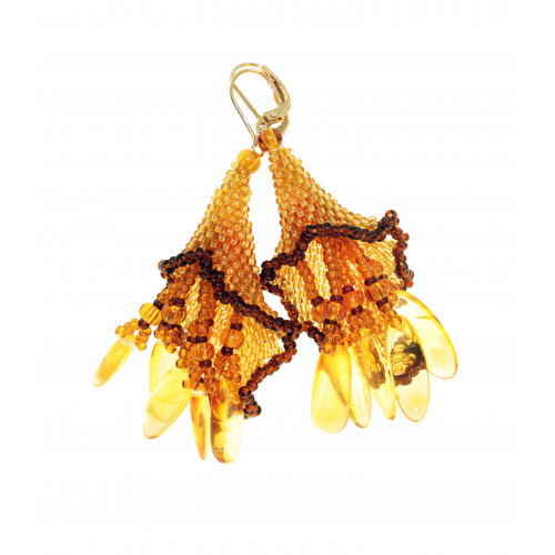 Серьги из натурального янтаря бисера ювелирного сплава в форме лилий 40823