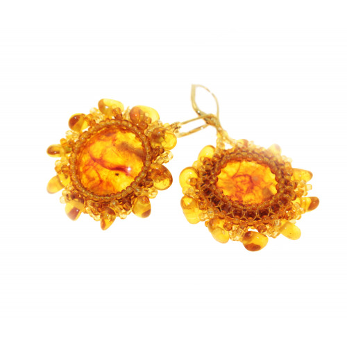 Серьги из светлого натурального янтаря бисера и ювелирного сплава 40828