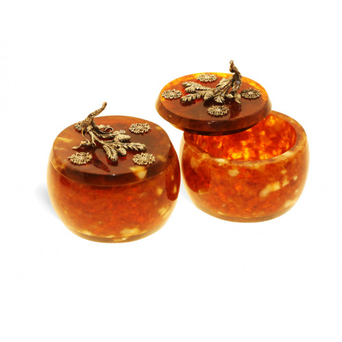 Состав: натуральный янтарь, белая ювелирная бронза, кристаллы Swarovski. Размеры: высота - 4,5 см., диаметр - 6 см.