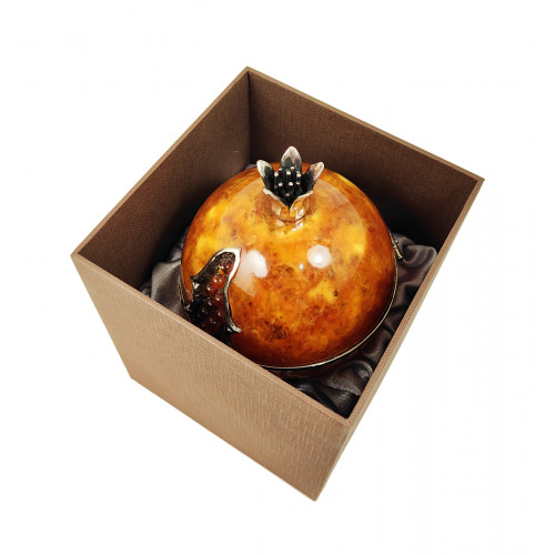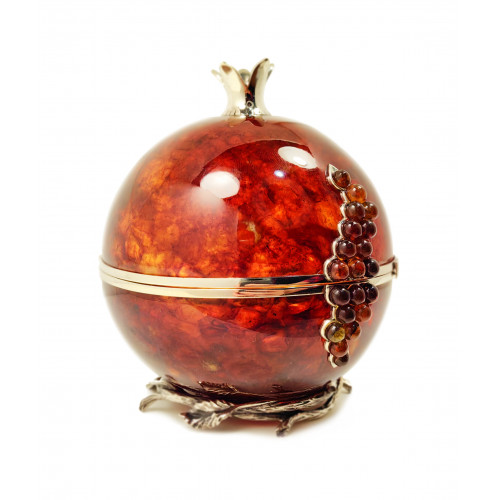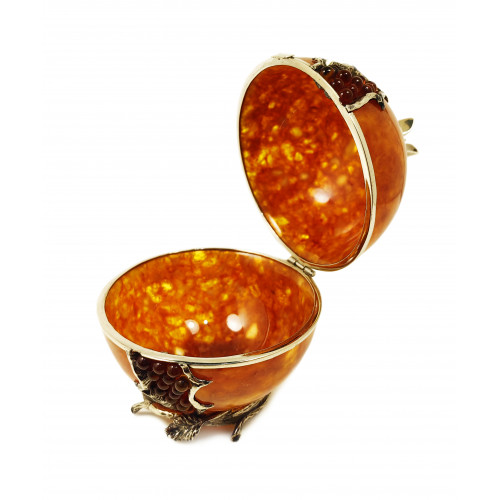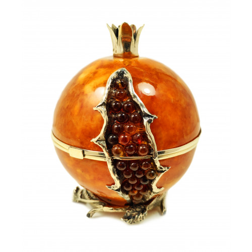 Шкатулка выполнена в виде плода граната. Может также использоваться в виде миниатюрной сахарницы.