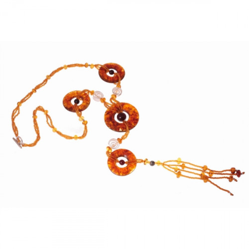Стильный кулон из балтийского янтаря и бисера 3-10015