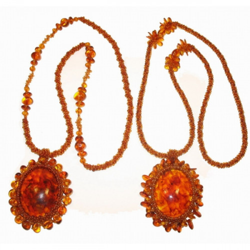 Стильный кулон из балтийского янтаря и бисера 30778;30779