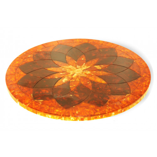 Состав: янтарь, подложка - дерево, Диаметр 41 см. Диаметр изделия может быть изменен по заказу. Ручная инкрустация. Оттенок янтаря может отличаться от оттенка на фотографии. Поставляется в подарочном футляре. Срок изготовления - от 3 недель.