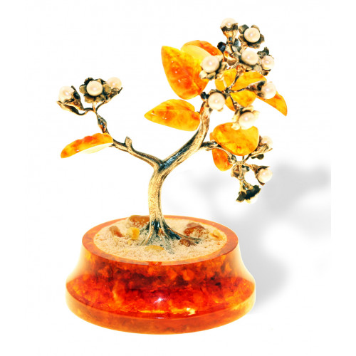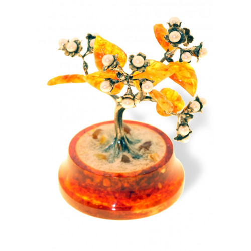 Состав: янтарь, серебро 875 пробы/ речной жемчуг. Вес серебра в изделии - 40,00 гр. Высота - 9,2 см., диаметр подставки - 5,4 см. Поставляется в подарочном футляре. В случае отсутствия товара на складе, срок доставки - от 3 недель.