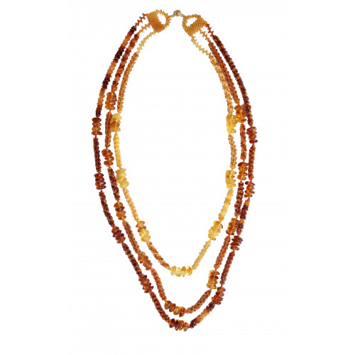 Трехуровневое колье из янтаря с бисером 10875-1n