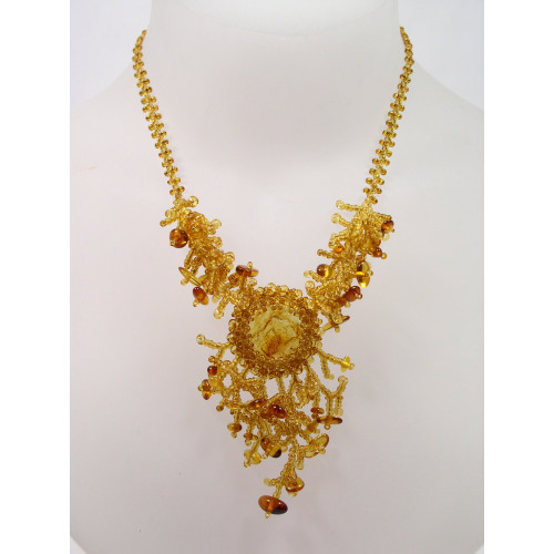 Удлиненное колье из натурального янтаря и бисера 10155