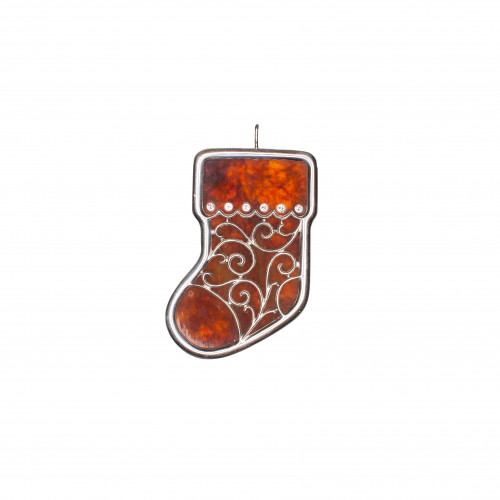 Оригинальное и необычное елочное украшение из натурального янтаря и серебра 875 пробы,украшенное сверкающими кристаллами Сваровски. Оттенок янтаря может варьироваться.