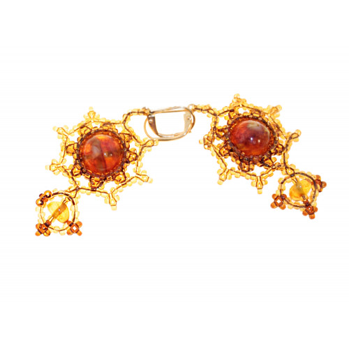 Ажурный утонченный комплект из бисера и натурального янтаря: колье, браслет, серьги 11058,20771,40834