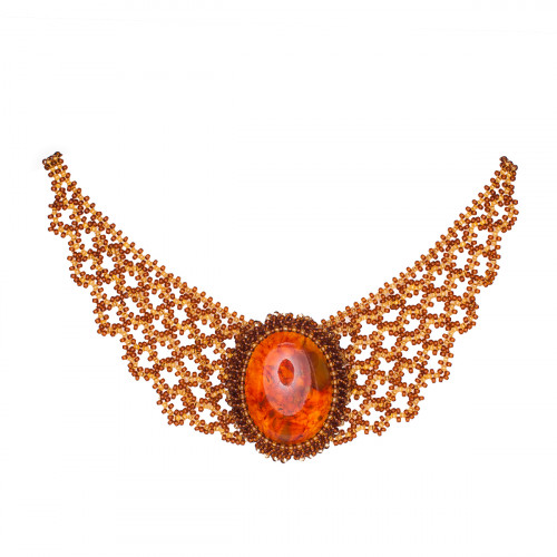 Бисерное плетеное колье с крупной вставкой из натурального янтаря 11113-1