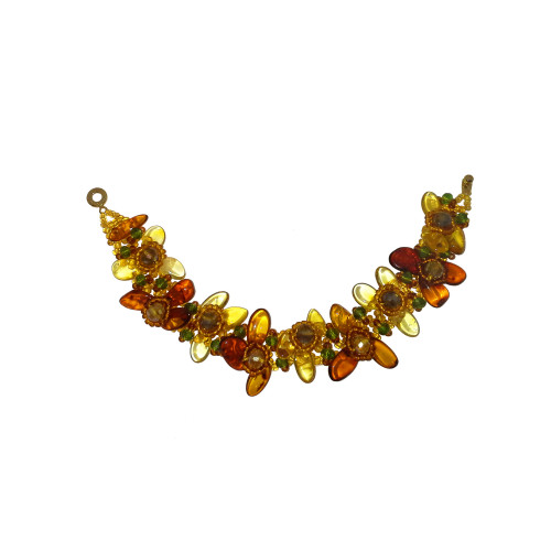 Браслет из балтийского янтаря бисера и цветного стекла 20775