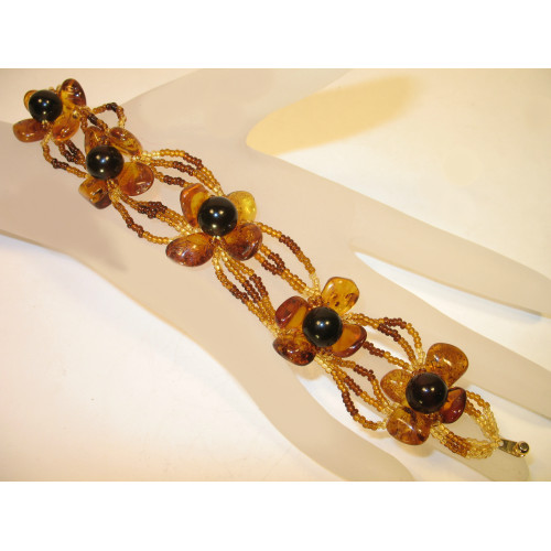 Состав: натуральный янтарь, бисер. Поставляется в льняном мешочке с янтарной пуговицей и картонной коробочке. В случае отсутствия товара на складе, срок доставки - от 3 недель.