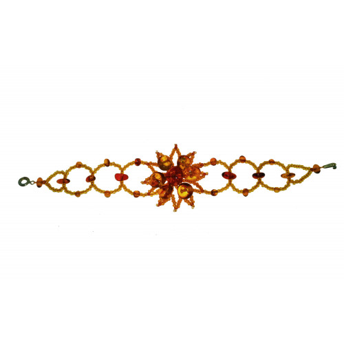 • Браслет, плетеный из бисера, со вставками из балтийского янтаря 20776