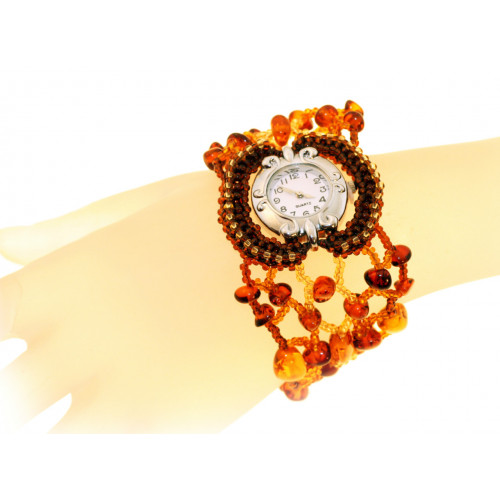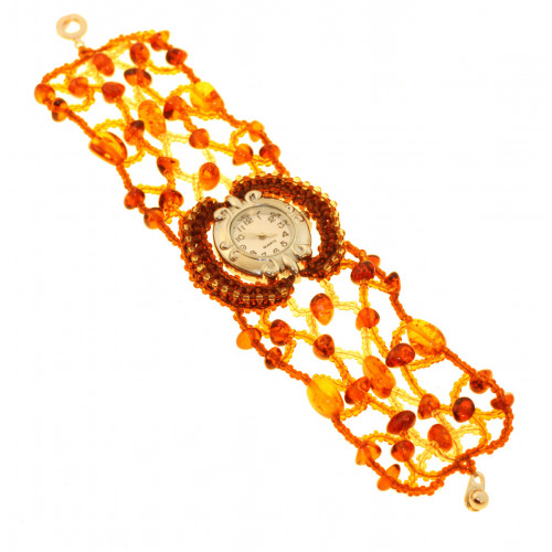 Состав: янтарь, бисер, кварцевые часы. Длина браслета 18 см. При заказе длина может быть любой. Оттенок изделия может отличаться от оттенка на фото. При отсутствии товара на складе срок изготовления от 3-х недель. Поставляется в подарочной упаковке.