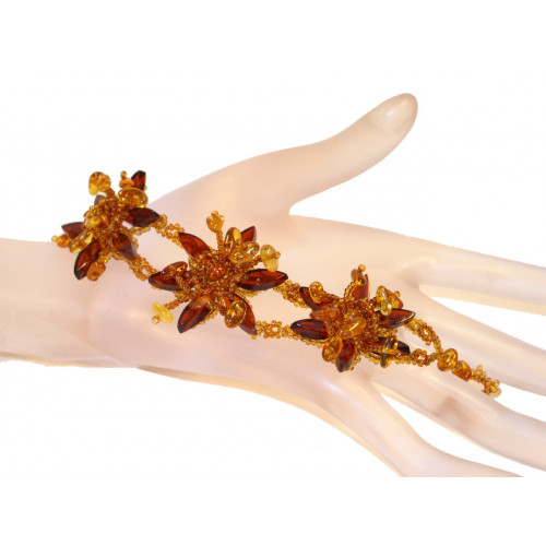 Браслет с цветами из балтийского янтаря и бисера 20001