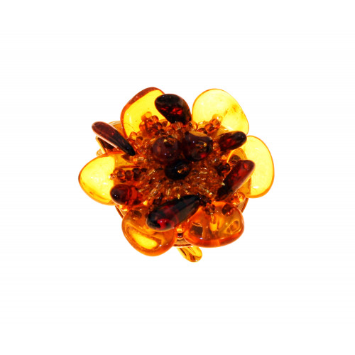 Брошь из натурального балтийского янтаря двух цветов 60794-3