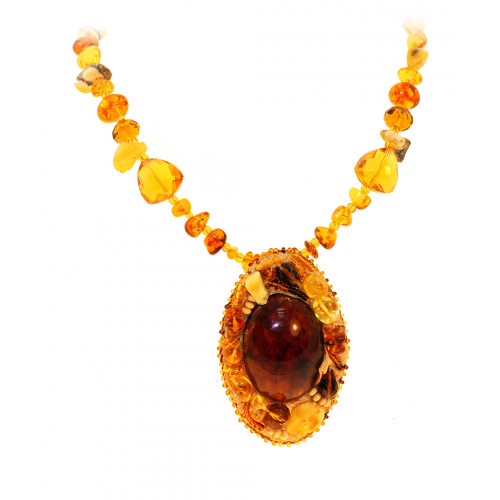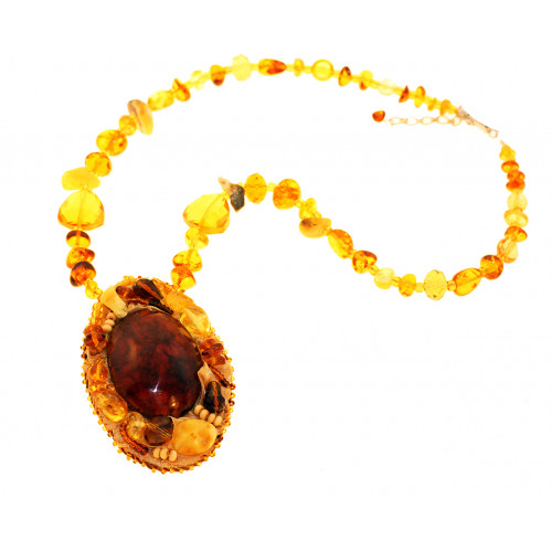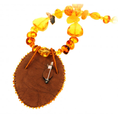 Брошь-кулон из балтийского янтаря и бисера 30875
