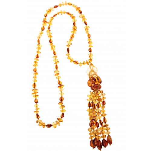 Состав: янтарь, бисер. Длина колье – 80 см. Под заказ длина может быть любой. В случае отсутствия товара на складе срок изготовления и поставки от 3 недель.