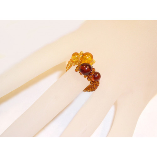 Двухцветное кольцо из балтийского янтаря и бисера 50014