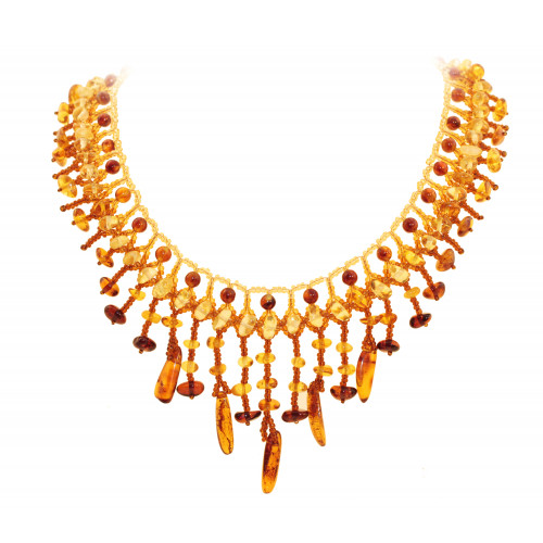 Эффектное колье из янтаря коньячного и медового цветов 11065