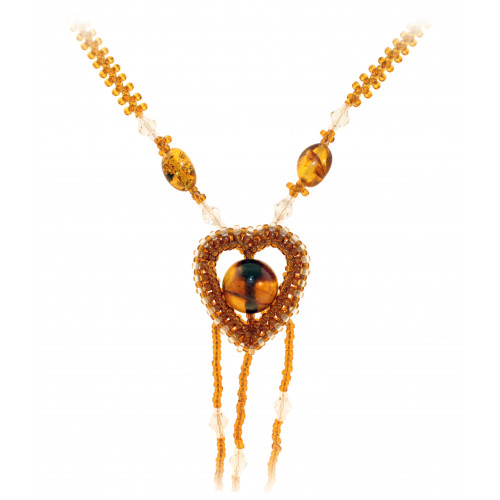 Элегантное удлиненное колье из янтаря с бисером и подвеской в форме сердца 10827-1