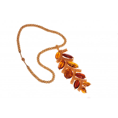 Элегантный кулон из балтийского янтаря с бисером 30831