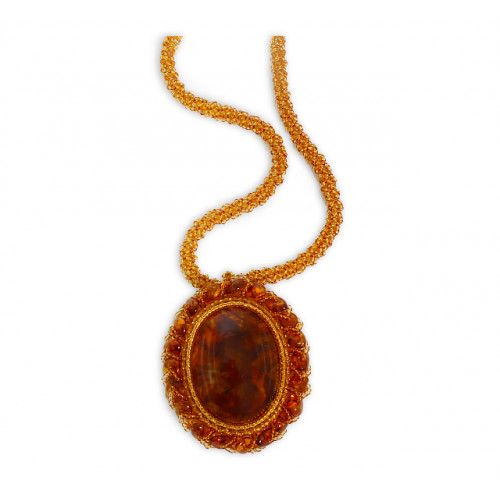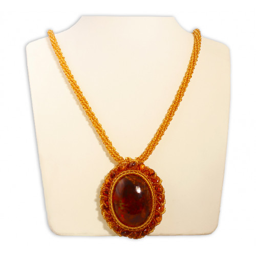 Элегантный овальный кулон из натурального янтаря и бисера 30127
