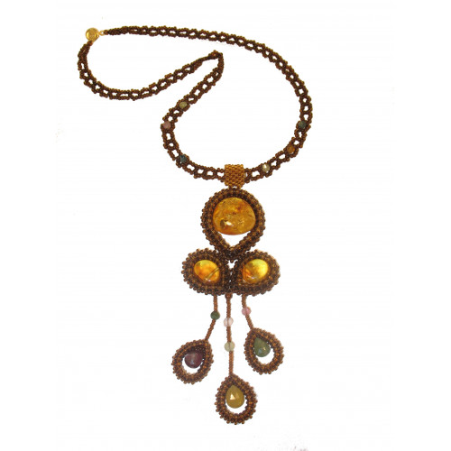 Изысканное колье из натурального янтаря бисера и турмалина 10889