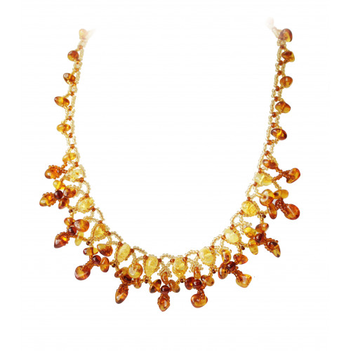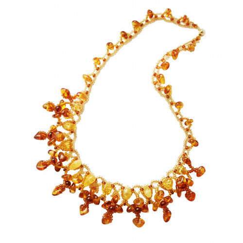 Состав: янтарь, бисер. Длина колье – 45 см. Под заказ длина может быть любой. В случае отсутствия товара на складе срок изготовления и поставки от 3 недель.