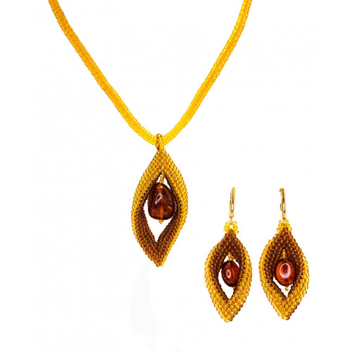 Состав: натуральный янтарь, бисер.