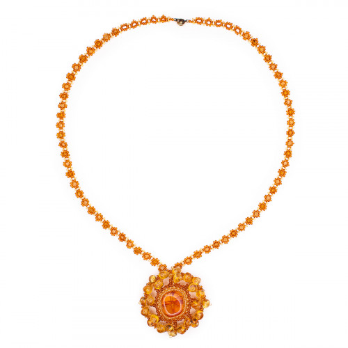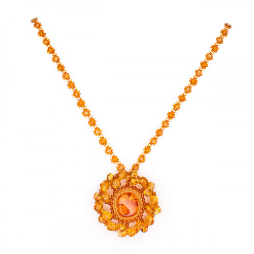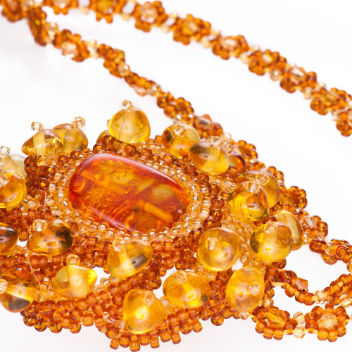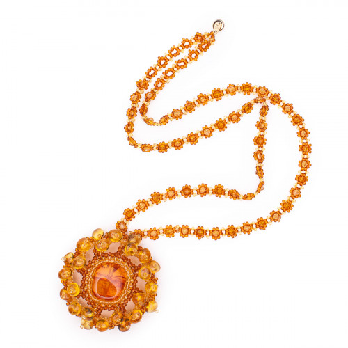 Изящный кулон из натурального янтаря и бисера 30913