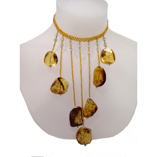 Состав: янтарь, бисер. Длина колье – 45 см. Под заказ длина может быть любой. В случае отсутствия товара на складе срок изготовления и поставки от 3 недель.