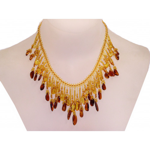 Колье из бисера и натурального янтаря 10248
