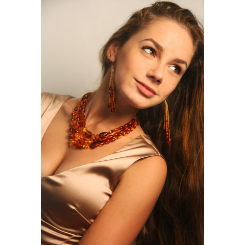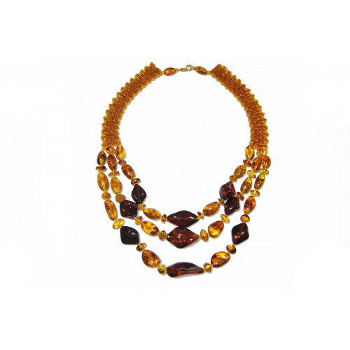 Состав: янтарь, бисер. Длина колье – 45 см. Под заказ длина может быть любой. В случае отсутствия товара на складе срок изготовления и поставки от 3 недель.