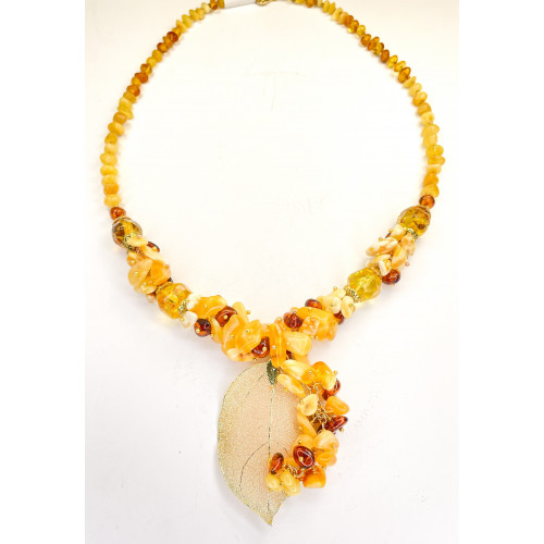 Колье из натурального балтийского янтаря с металлическими вставками 11175
