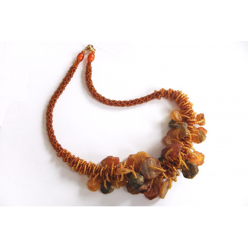 Колье из необработанного янтаря и бисера 10936